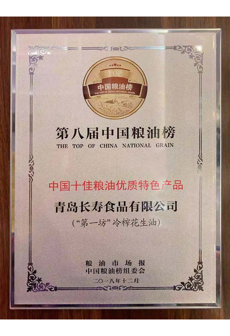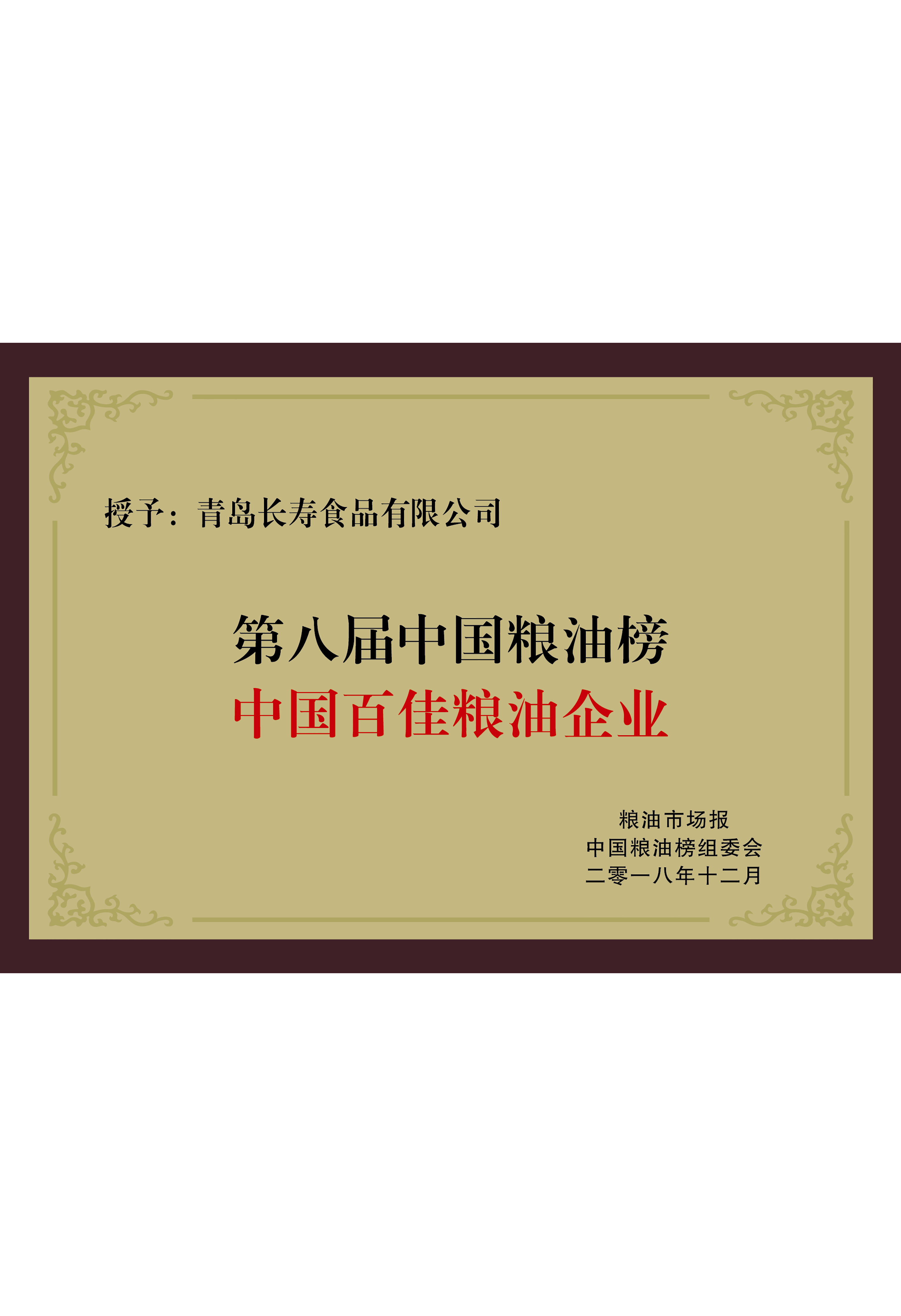 2018年12月 榮獲“中國百佳糧油企業(yè)”稱號,同時還榮獲“中國十佳糧油優(yōu)質(zhì)特色產(chǎn)品”榮譽稱號