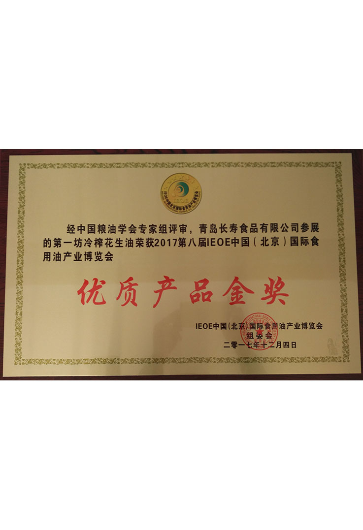 2017年12月 獲得中國糧油學(xué)會授予的“優(yōu)質(zhì)產(chǎn)品金獎”